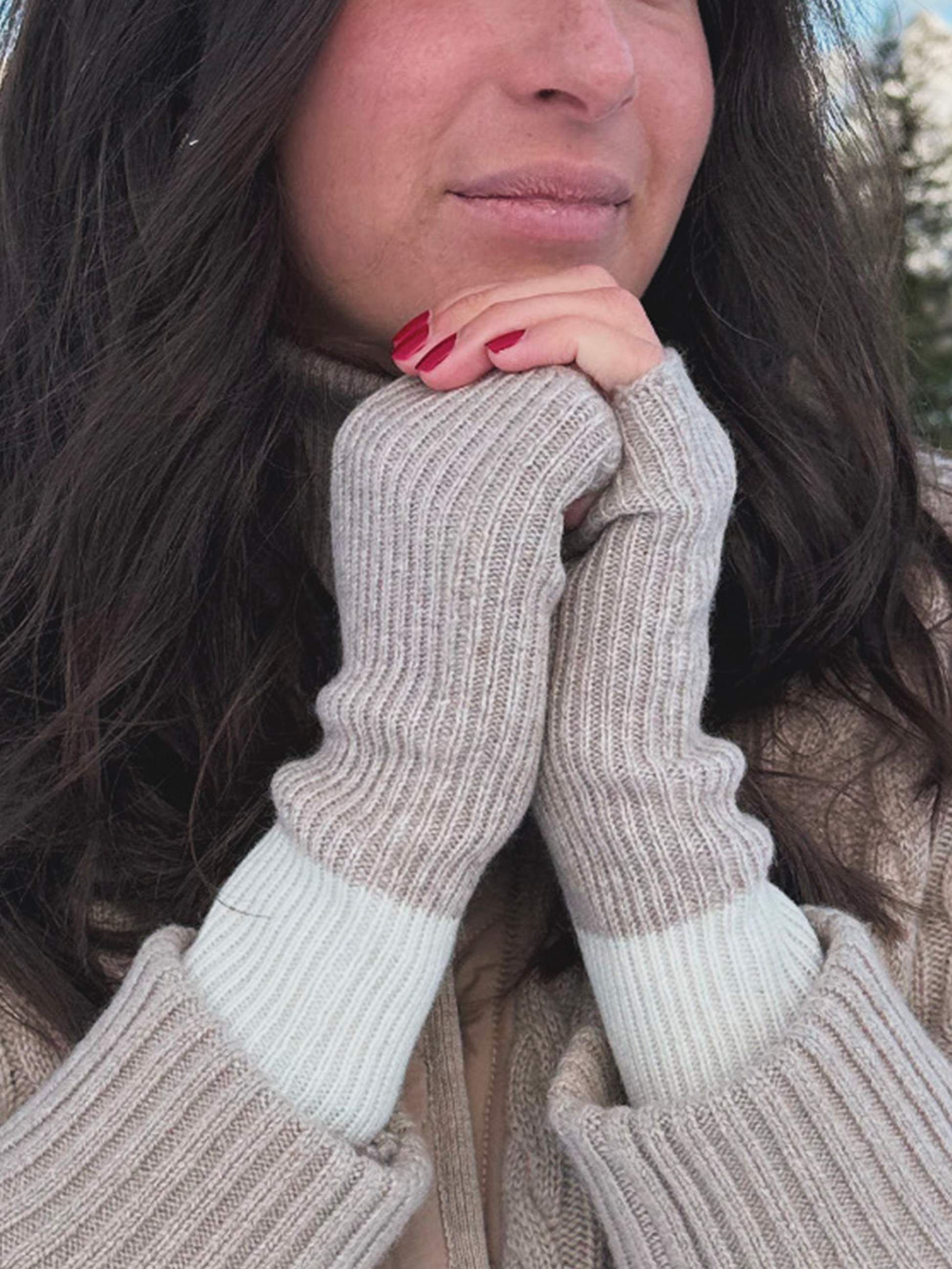 Mitaines beige et blanc